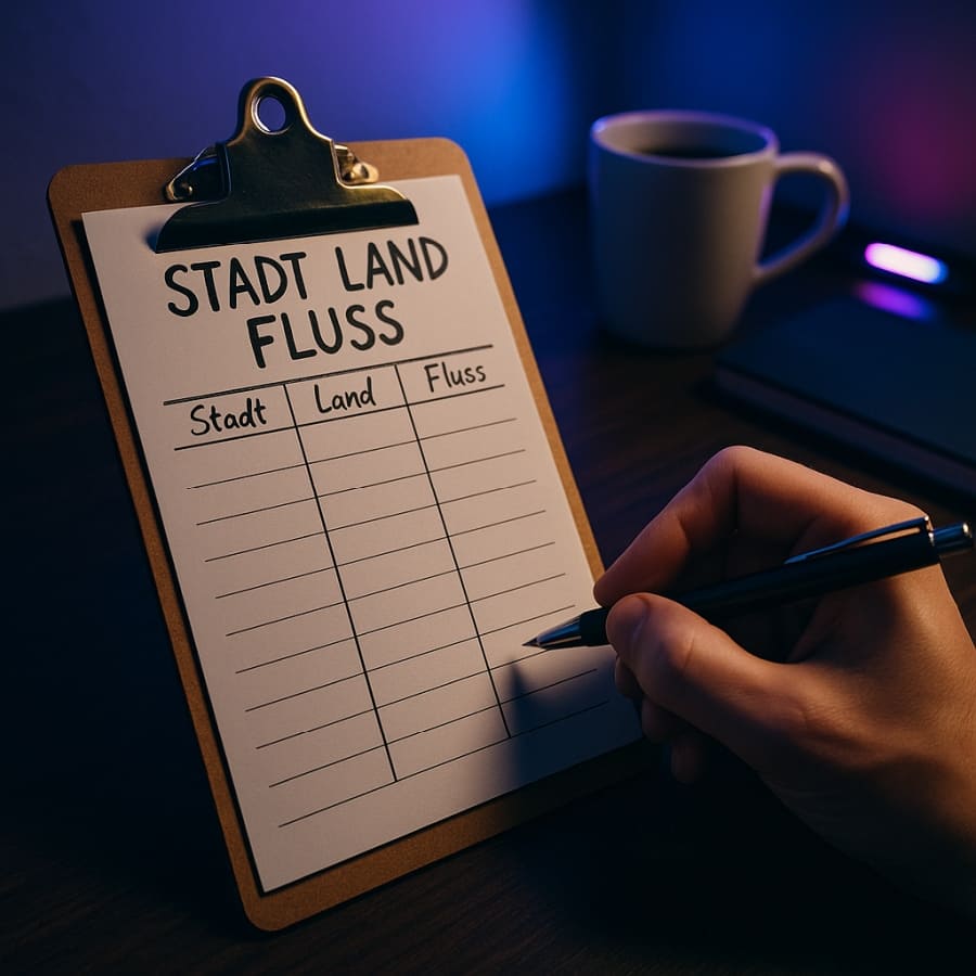 Diese Seite ist entstanden, weil wir Stadt Land Fluss lieben und dieses Wissen mit dir teilen wollen. Wir glauben, dass ein Klassiker wie dieses Spiel immer einen Platz verdient – im Klassenzimmer, am Esstisch, auf Partys und online. Mit unseren Komplettlösungen, der Begriff-Suche, den Spielregeln, den vielen Varianten und der großen FAQ möchten wir dir helfen, das Beste aus jeder Runde herauszuholen. Wir heißen dich herzlich willkommen und freuen uns, wenn du das Spiel genauso genießt wie wir.